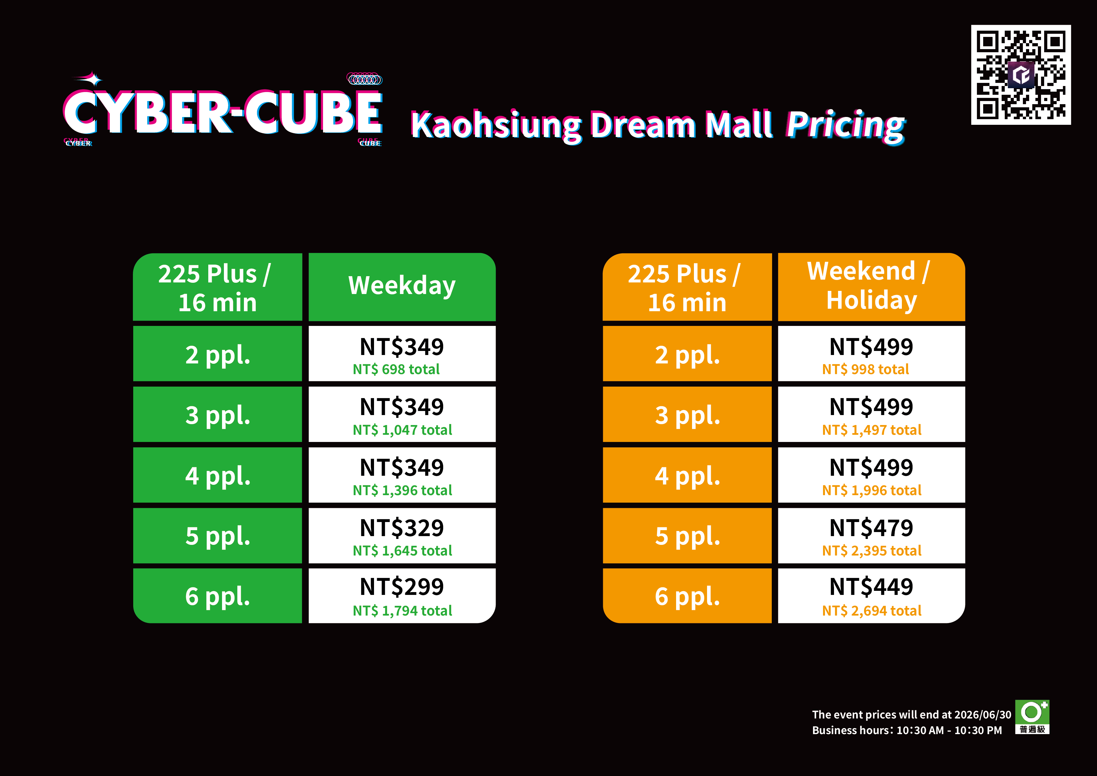 The reservation platform offers different discounted, regular, and busy hour prices. Please refer to the reservation website for the exact pricing. For more details, check the official website or promotional materials. CyberCube reserves the right to final pricing and interpretation.
