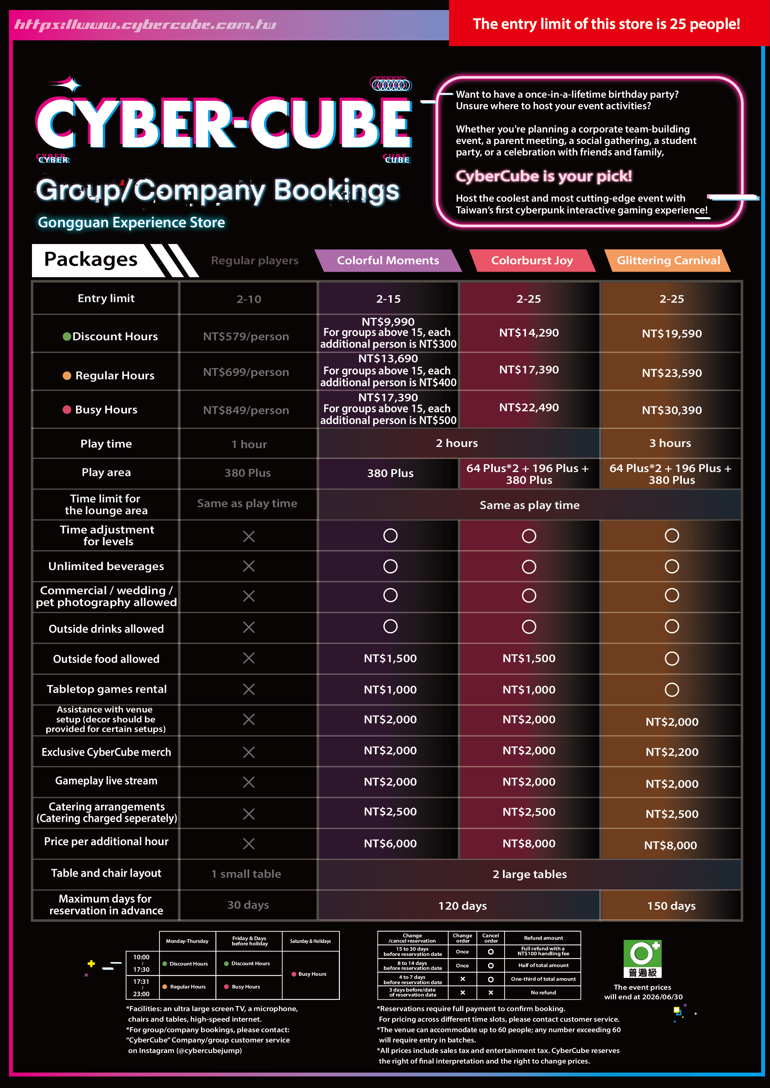 your order and add-on request as early as possible. The Colorful Moments Package includes a 2-hour experience,
