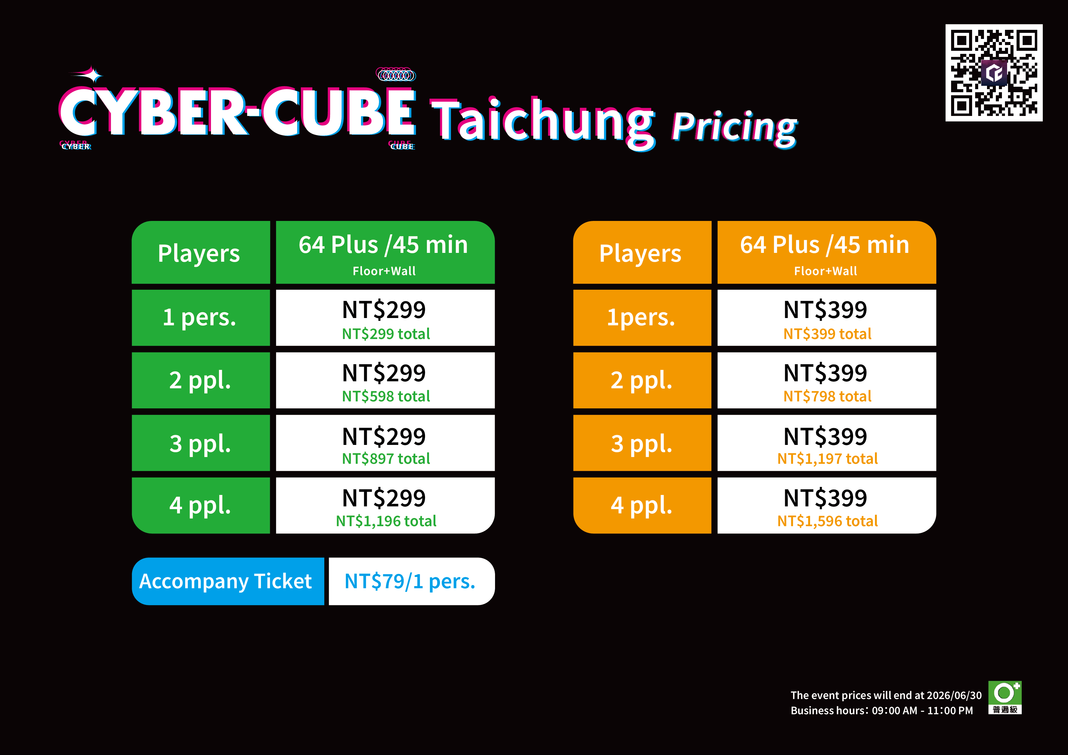 The reservation platform offers different discounted, regular, and busy hour prices. Please refer to the reservation website for the exact pricing. For more details, check the official website or promotional materials. CyberCube reserves the right to final pricing and interpretation.