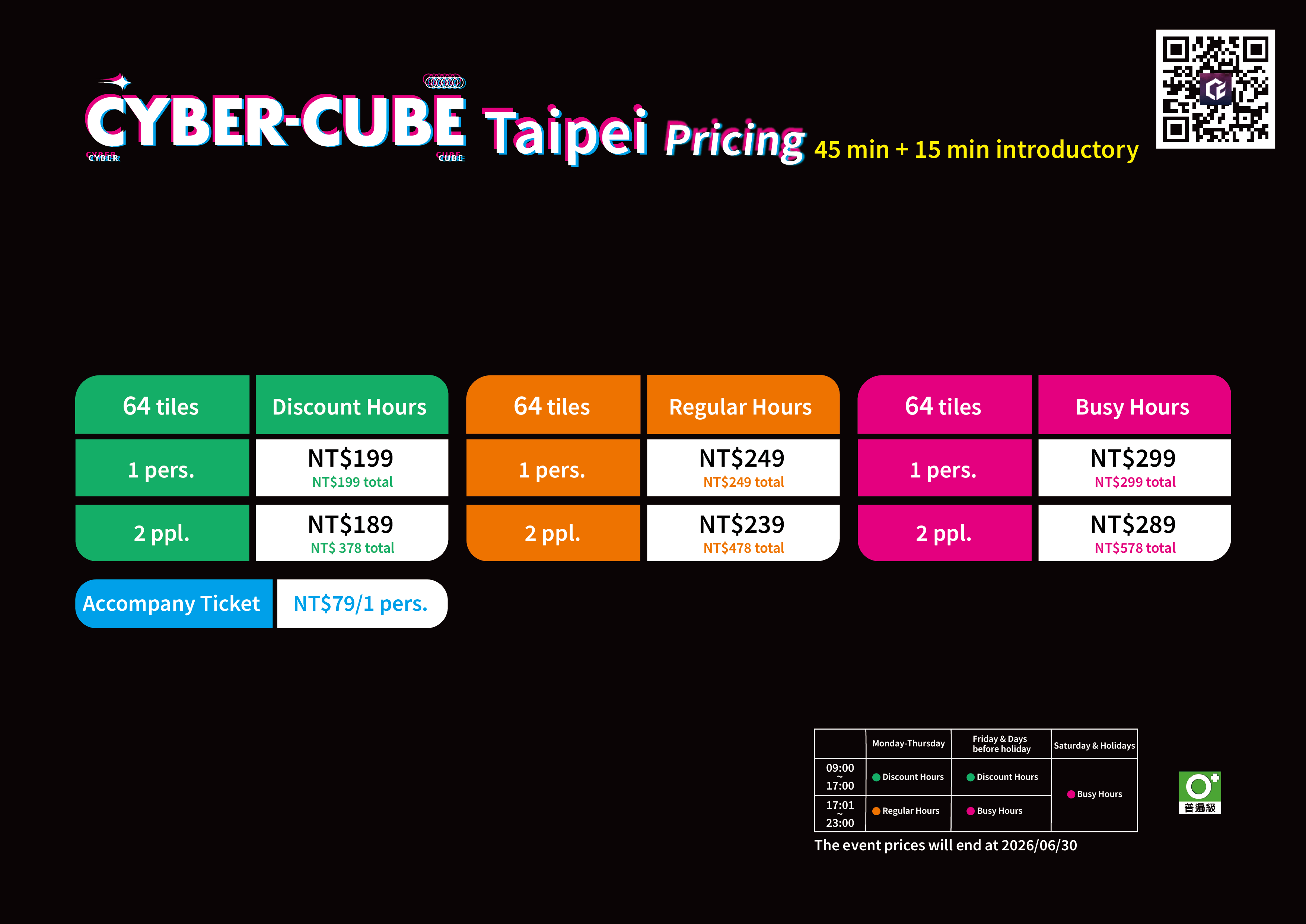 The reservation platform offers different discounted, regular, and busy hour prices. Please refer to the reservation website for the exact pricing. For more details, check the official website or promotional materials. CyberCube reserves the right to final pricing and interpretation.