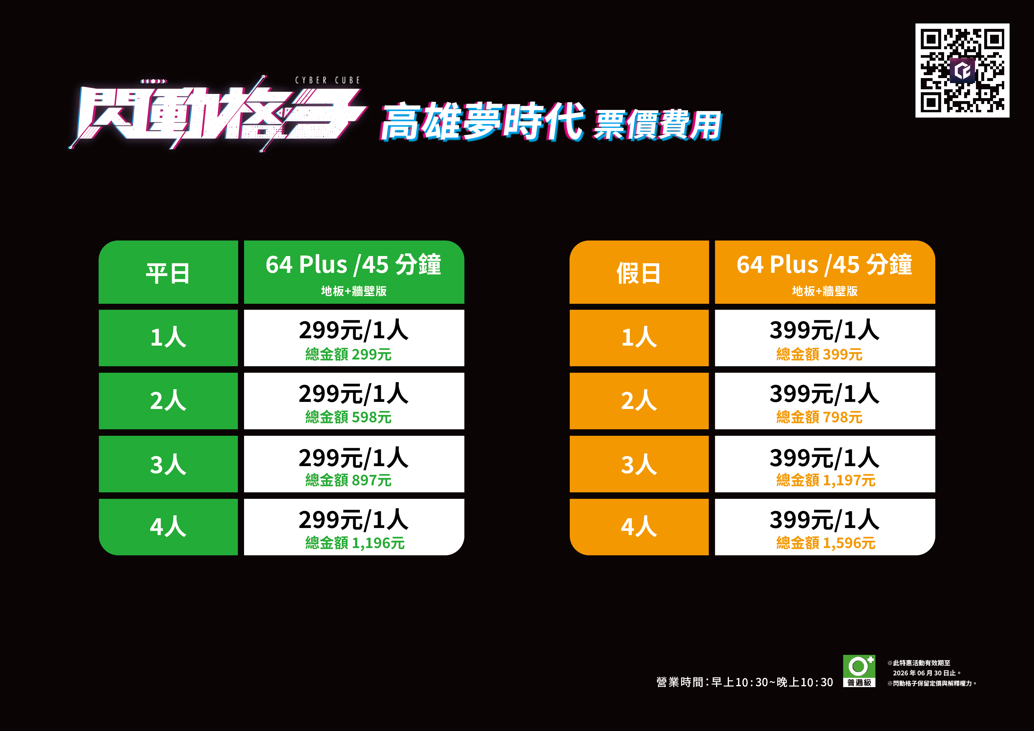 1. 購買玩家票挑戰64格類型場域,需由法定監護人全程陪同。