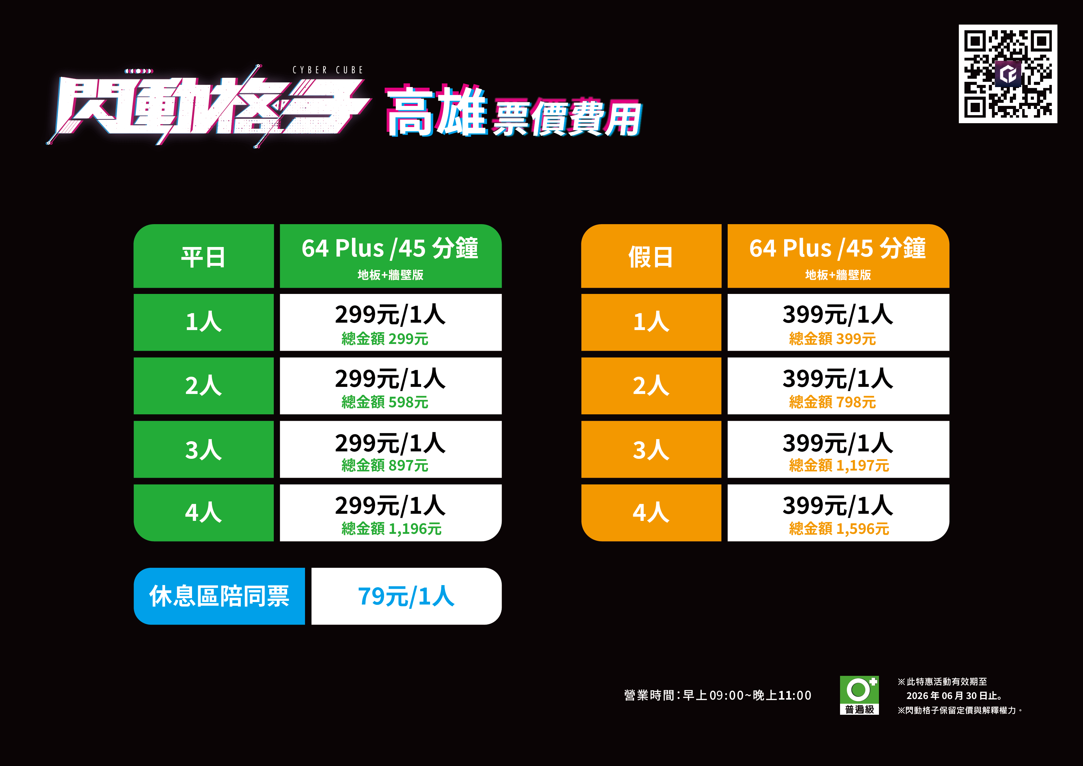 ▶︎ 5 歲以下兒童免休息區陪同票,若入場遊玩須購買玩家票喔!