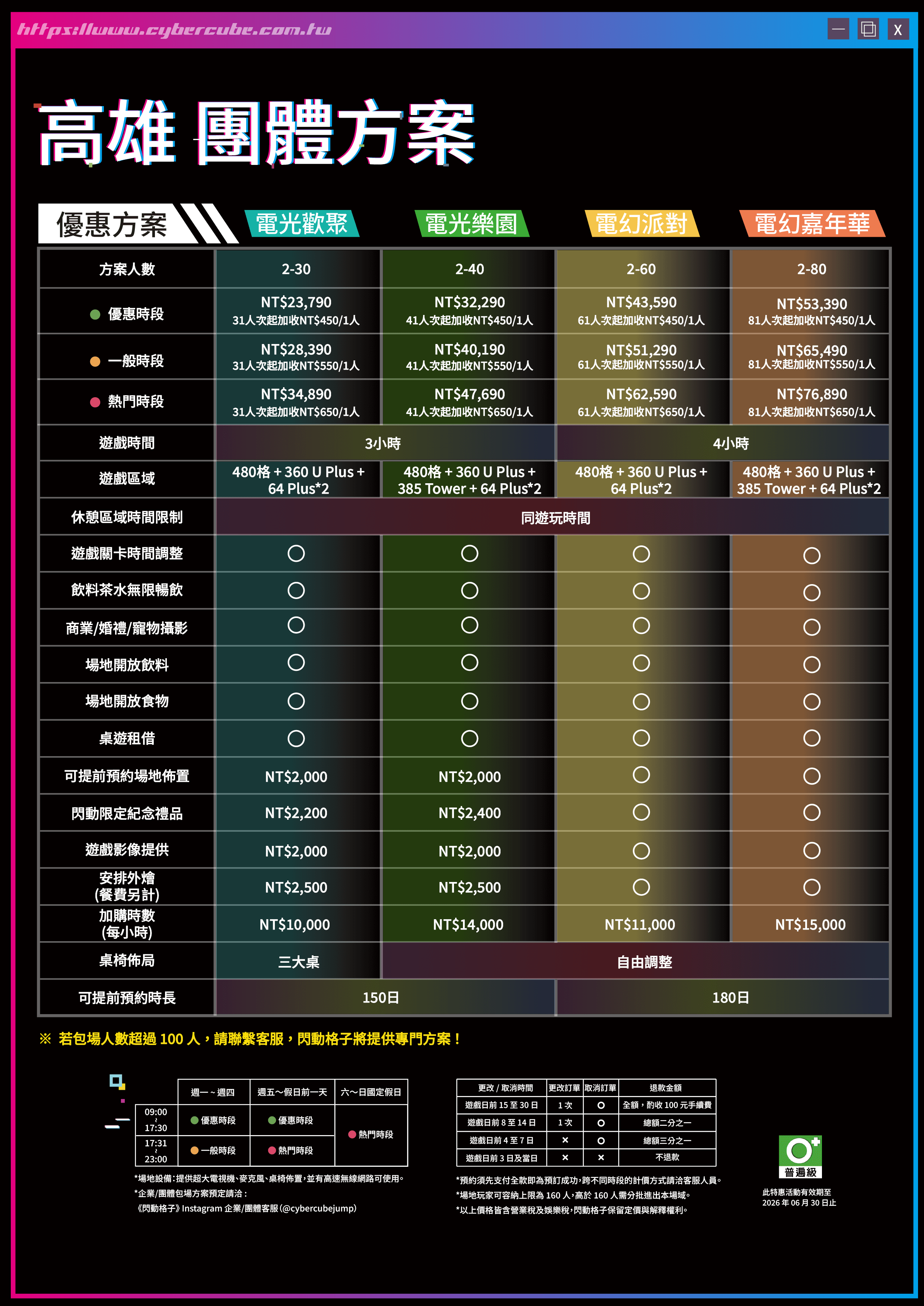 方案適用人數上限為 40 人,若玩家人數超過上限,請以加購玩家票的方式選擇超出之人數。