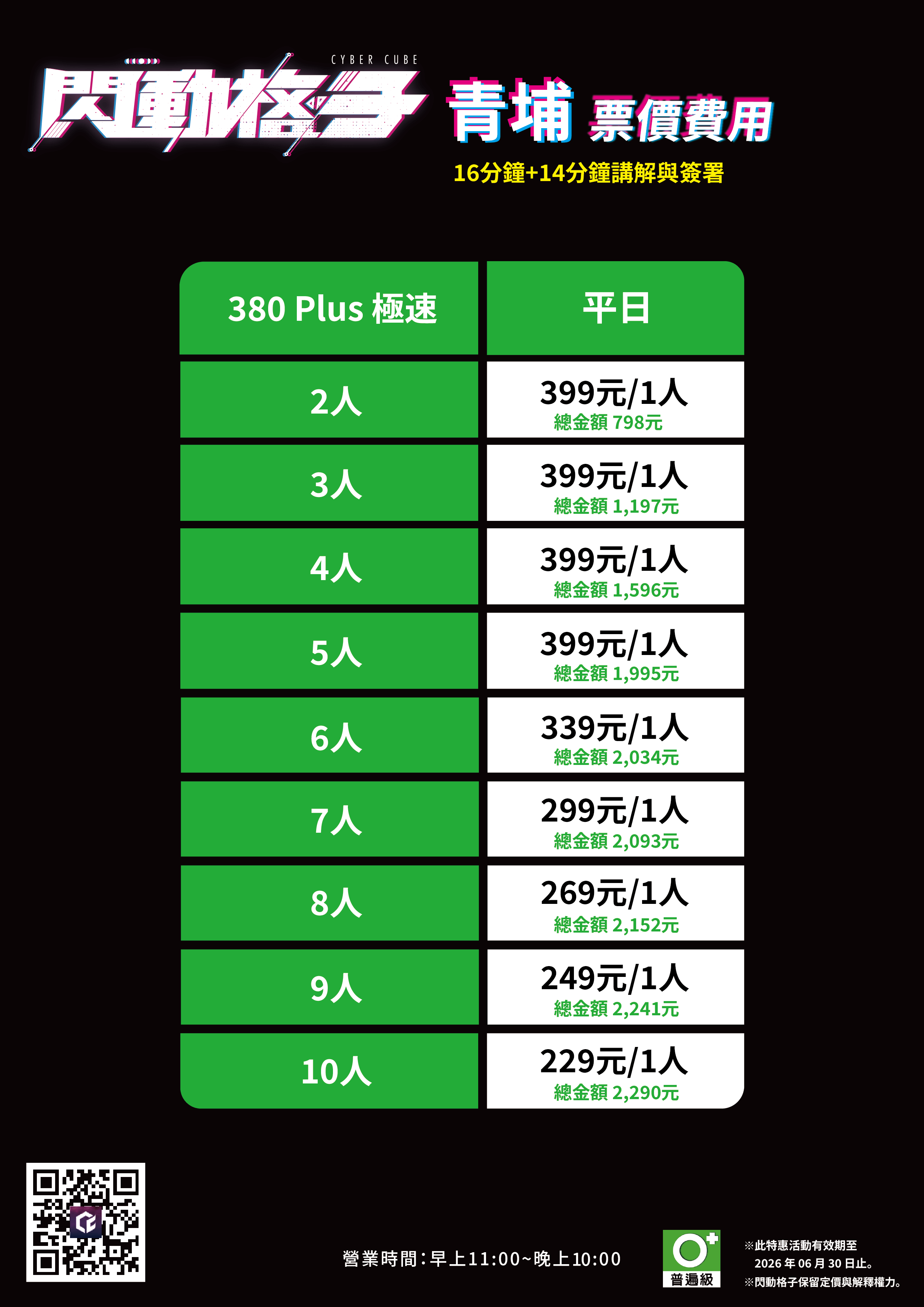 基於遊戲系統限制,380 Plus 挑戰區適用遊玩人數為 2 - 10 人。若超出適用人數,需預約連續時段並分組進行遊玩。