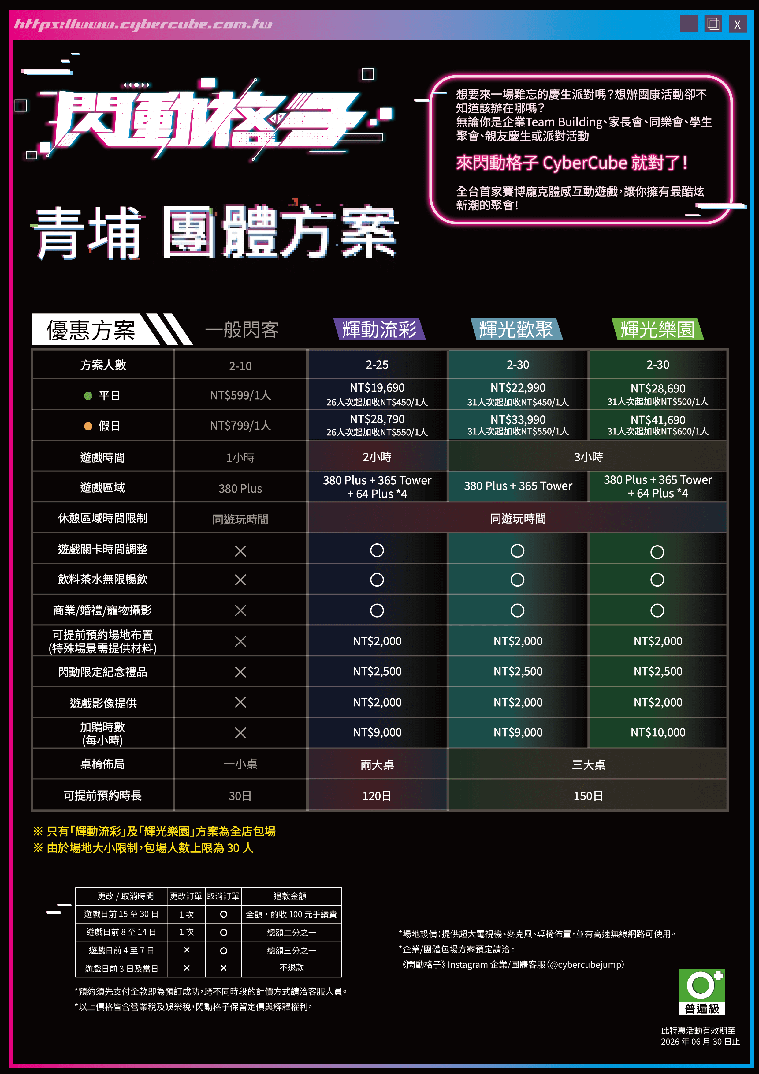 方案適用人數上限為 30 人,若玩家人數超過上限,請以加購玩家票的方式選擇超出之人數。