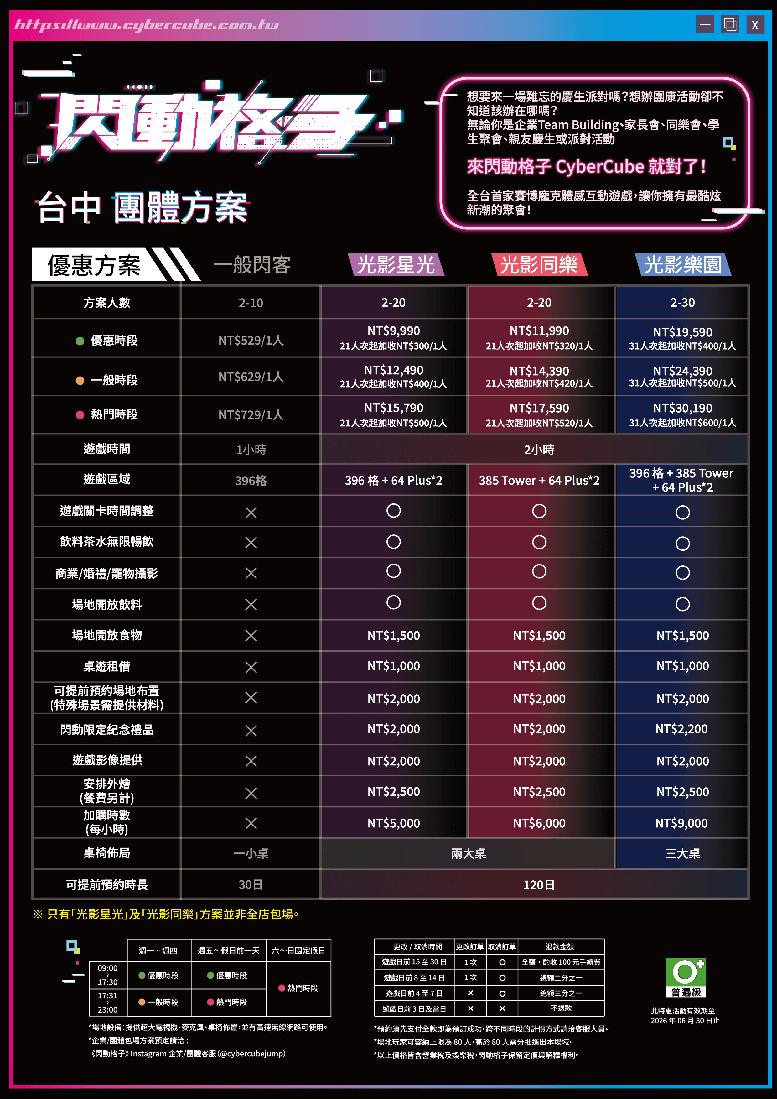 此方案並非全店包場,其餘場地可能仍會有閃客進行遊玩。
