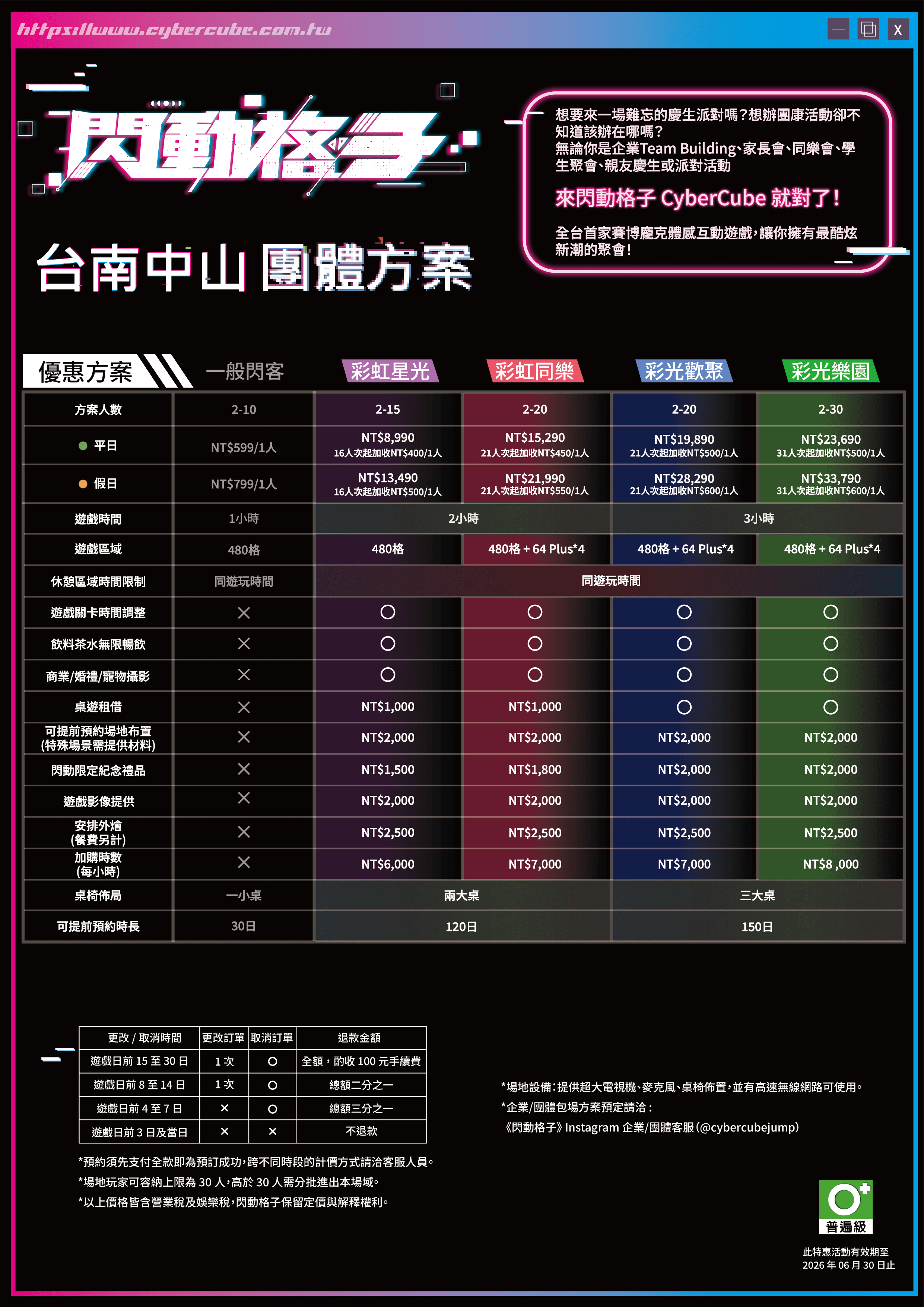 此方案並非全店包場,其餘場地可能仍會有閃客進行遊玩。