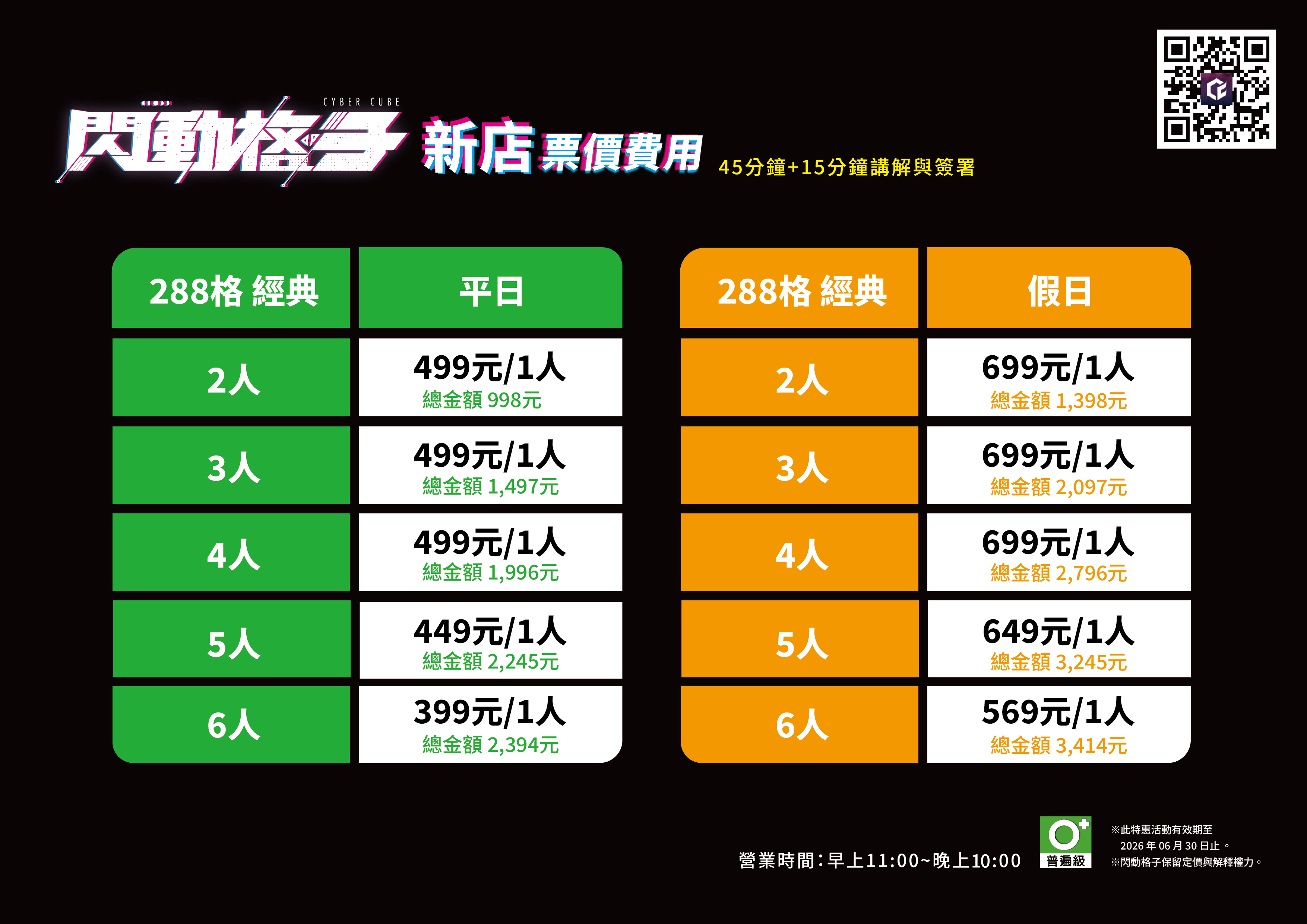 基於遊戲系統限制,288 格挑戰場適用遊玩人數為 2 - 6 人。若超出適用人數,需預約連續時段並分組進行遊玩。