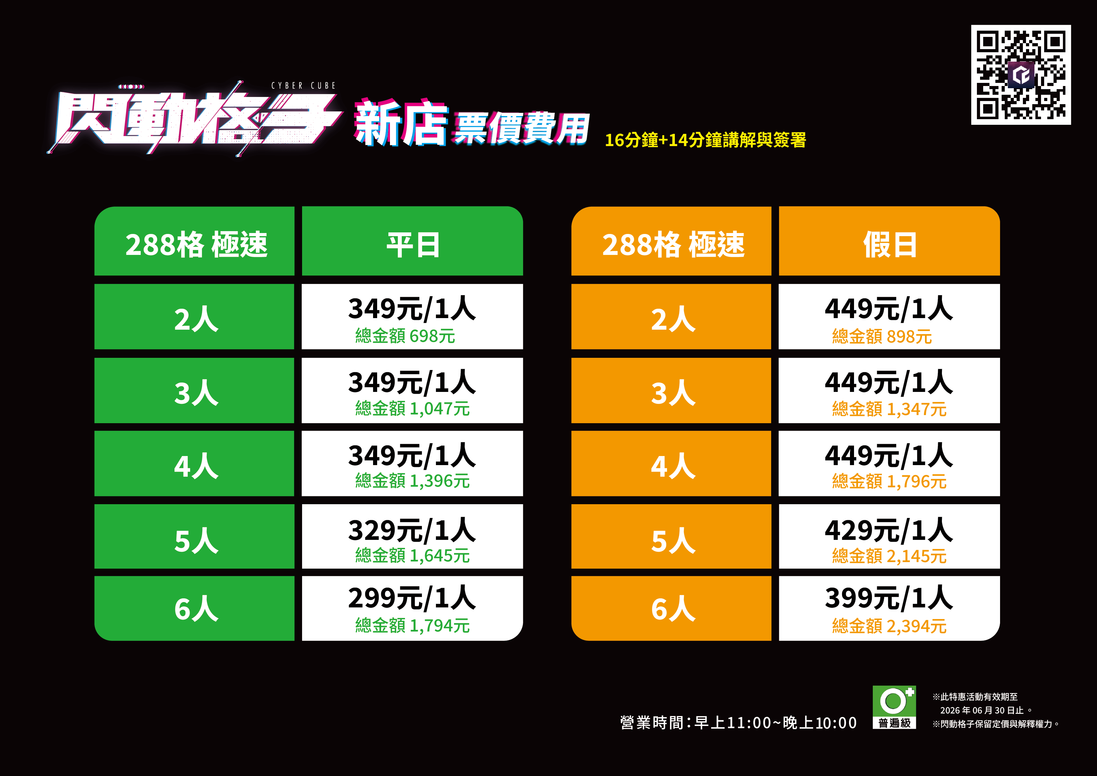 ▶︎ 未滿 18 歲的青少年必須由一位法定監護人陪同在場或攜帶簽署完成的聲明書,方可進入並體驗遊戲(未成年相關規定請參考官方網站)。
