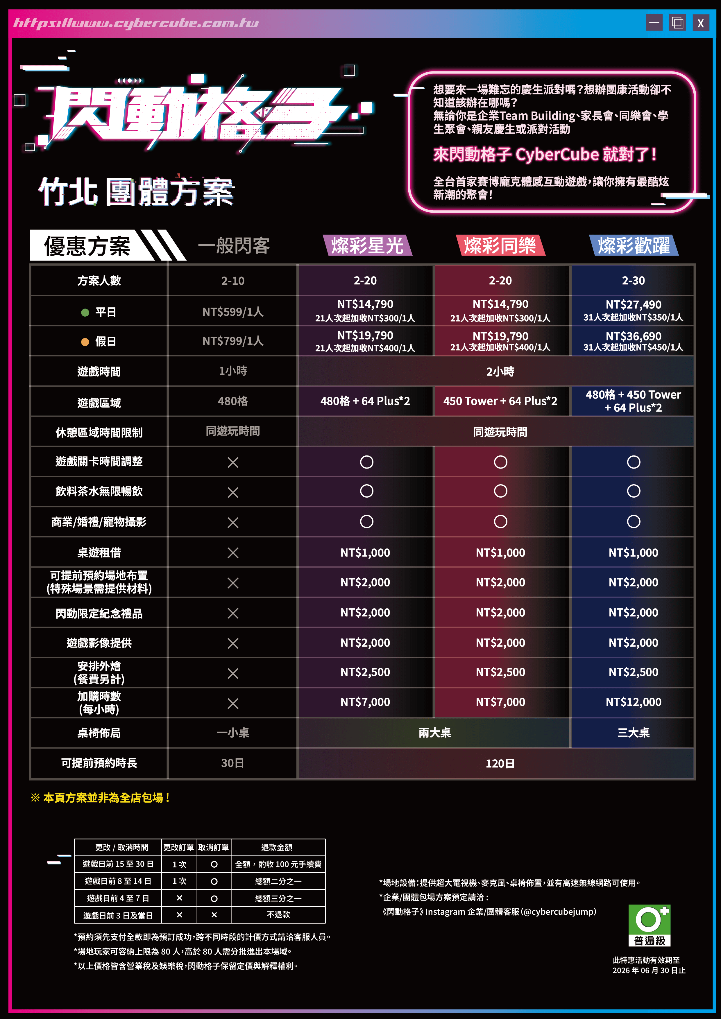 此方案並非全店包場,其餘場地可能仍會有閃客進行遊玩。
